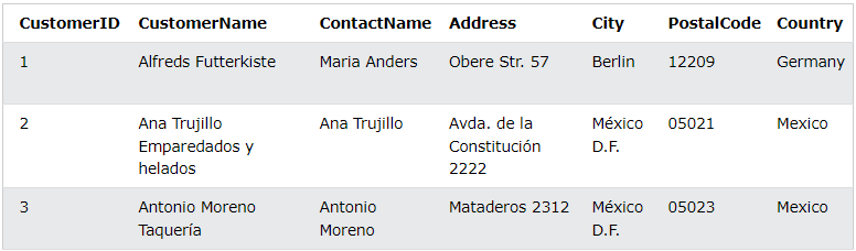 예시 테이블 > Customers