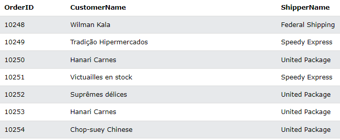 아래 SQL 문은 customer, shipper 정보가 포함된 모든 주문을 조회한다.